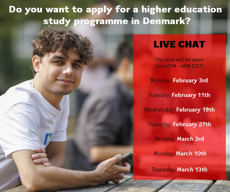 Live chat with a guidance counsellor on how to apply for a study programme at a higher education institution in Denmark