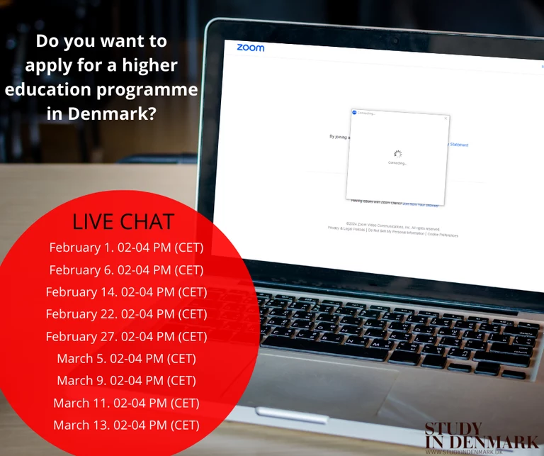If you want to apply for a higher education study programme in Denmark, then you can participate in a live chat and ask your questions about the application process to a guidance counsellor.