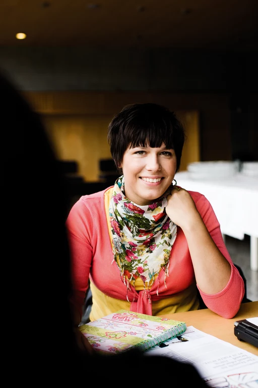 STDK. SDU_profilbillede mørkhåret pige med koralfarvet bluse