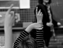 You are here: Home Photos STDK. Boy raises hand for question